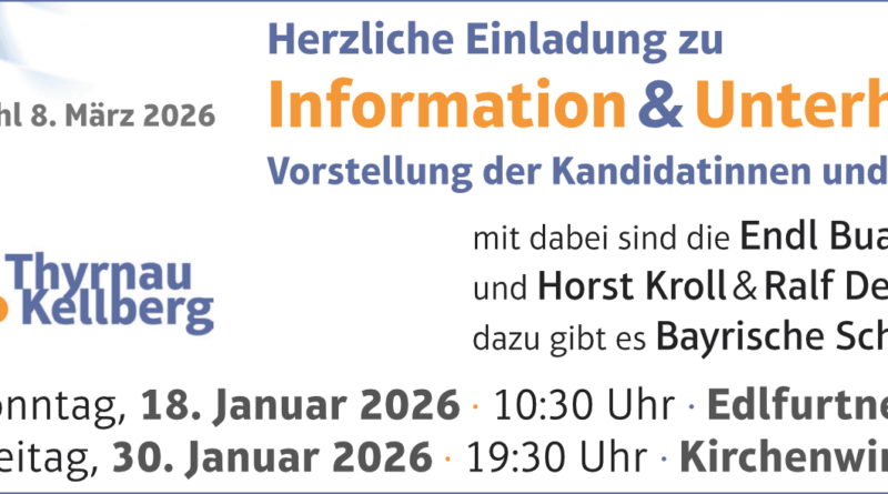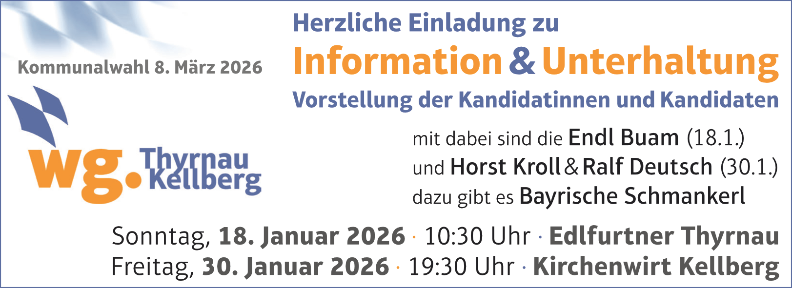 Thyrnau. Die Wählergemeinschaft Thyrnau-Kellberg stellt im Rahmen zweier Informationsveranstaltungen ihr Programm und ihre Kandidaten für die Kommunalwahl am 8. März 2026 vor.